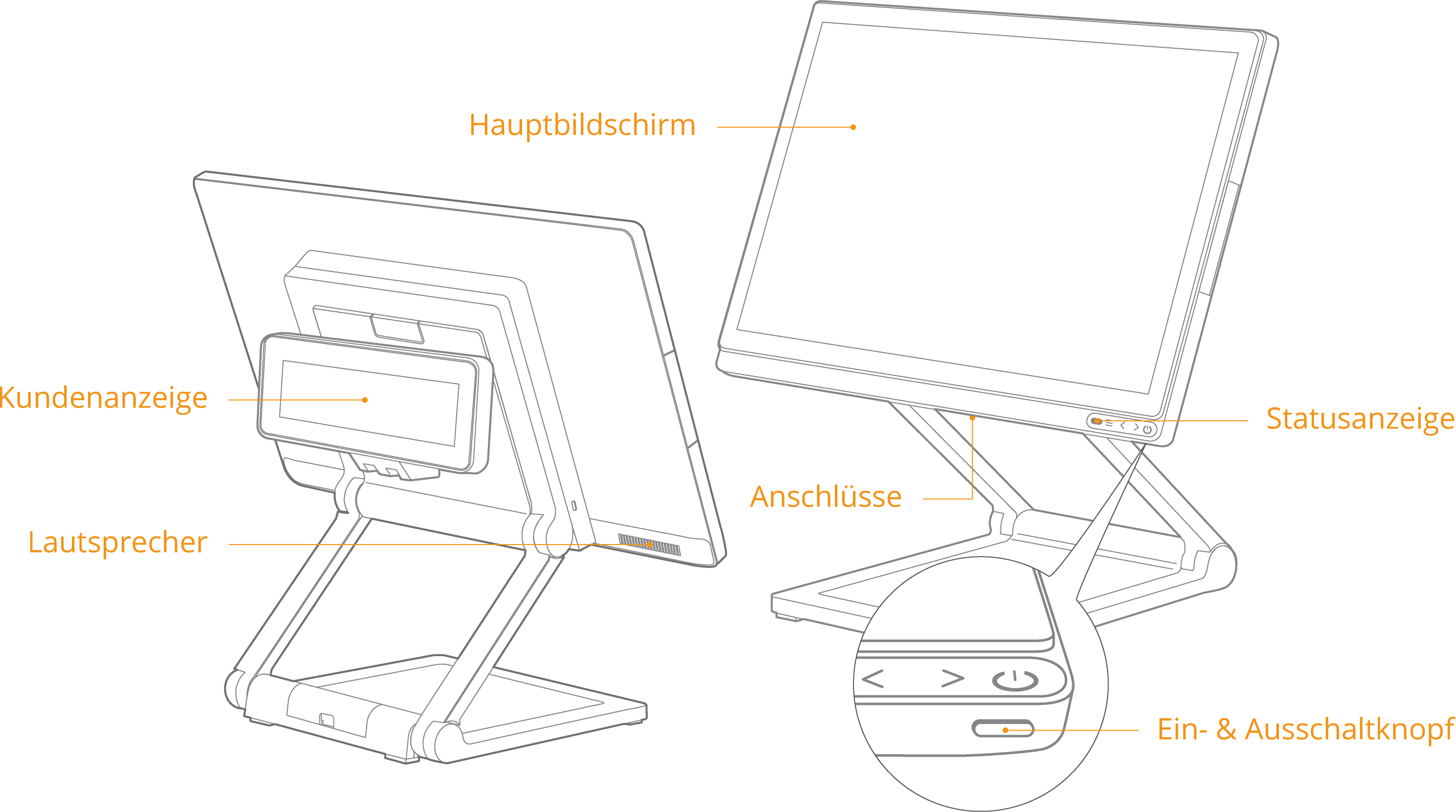 Über den USB-C Anschluss werden Peripherie Geräte mit der Kasse verbunden, wie zum Beispiel der Drucker. Wie der Drucker korrekt angeschlossen wird, erfahren Sie weiter unten.