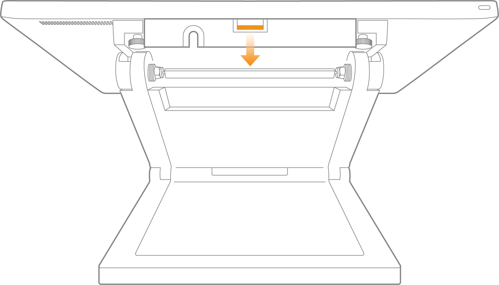 Schließen Sie ein Ende des USB Kabels an die Registrierkasse an, das andere Ende des Kabels schließen Sie an das Kundendisplay an. Die Anschlüsse finden Sie an der Unterseite des Bildschirms.