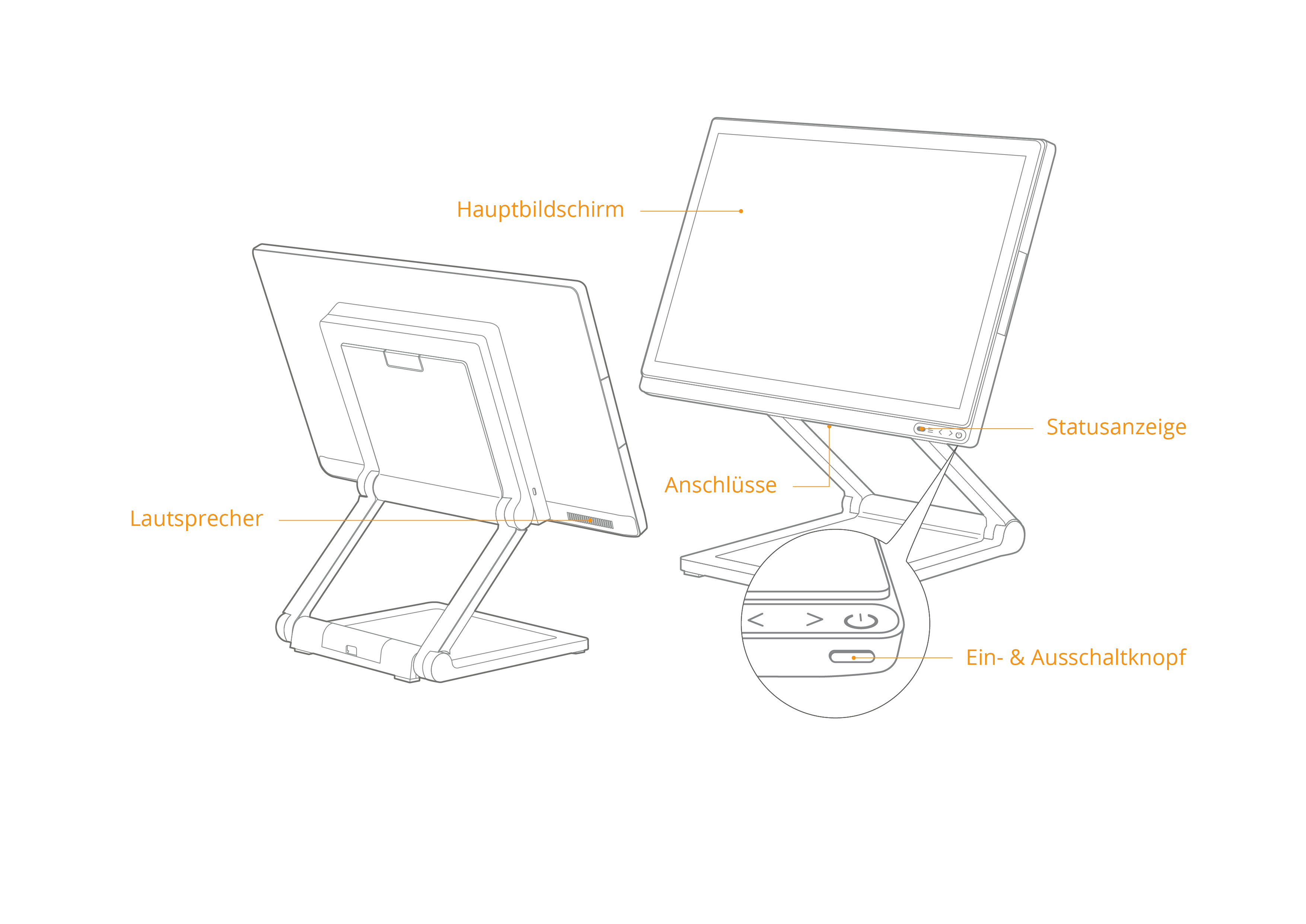 Über den USB-C Anschluss werden Peripherie Geräte mit der Kasse verbunden, wie zum Beispiel der Drucker. Wie der Drucker korrekt angeschlossen wird, erfahren Sie weiter unten.