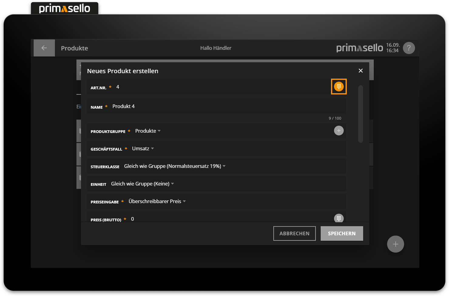 Bei Felder in denen Zahlen, Beträge, Prozentwerte oder eine andere Nummerneingabe benötigt wird, befindet sich am Ende der Formularzeile eine "Zehnertastatur"-Taste.