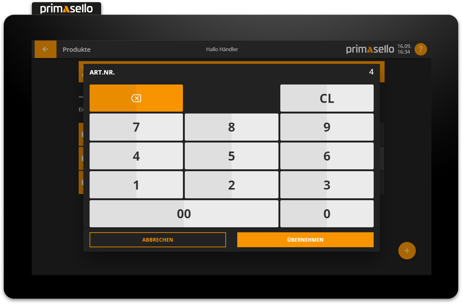 Drückt man auf diese, öffnet sich ein neues Fenster mit der Zehnertastatur. Alle Zifferneingaben können, wie gewohnt über diese eingegeben werden. Beträge werden in Cent eingetippt (ohne Komma), bei Prozentwerten ist eine Dezimaleingabe (mit Komma) erlaubt.