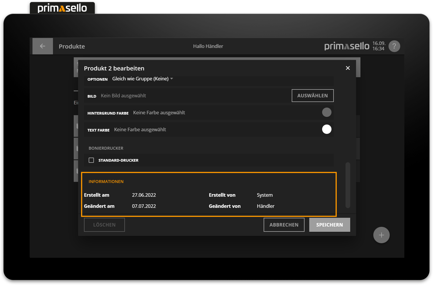 Am Ende jedes Detailfenster befinden sich weitere Informationen zum erstellten Eintrag. Dieser Abschnitt enthält den Benutzer und das Datum, an dem der Eintrag erstellt wurde, sowie Informationen zur letzten vorgenommenen Änderung.