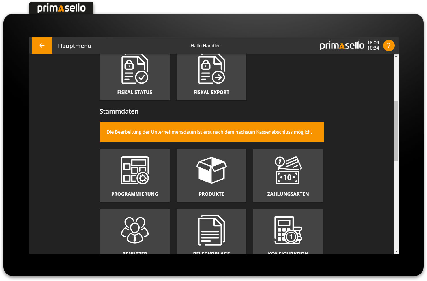 Die Bearbeitung der Unternehmensdaten ist nur nach einem Kassenabschluss möglich. Sind Belege vorhanden, die noch nicht mit einem Kassenabschluss archiviert wurden, können Angaben zum Unternehmen, dem Standort, der Kasse und dem Sicherheitsmodul eingesehen aber nicht bearbeitet, erstellt oder gelöscht werden.
