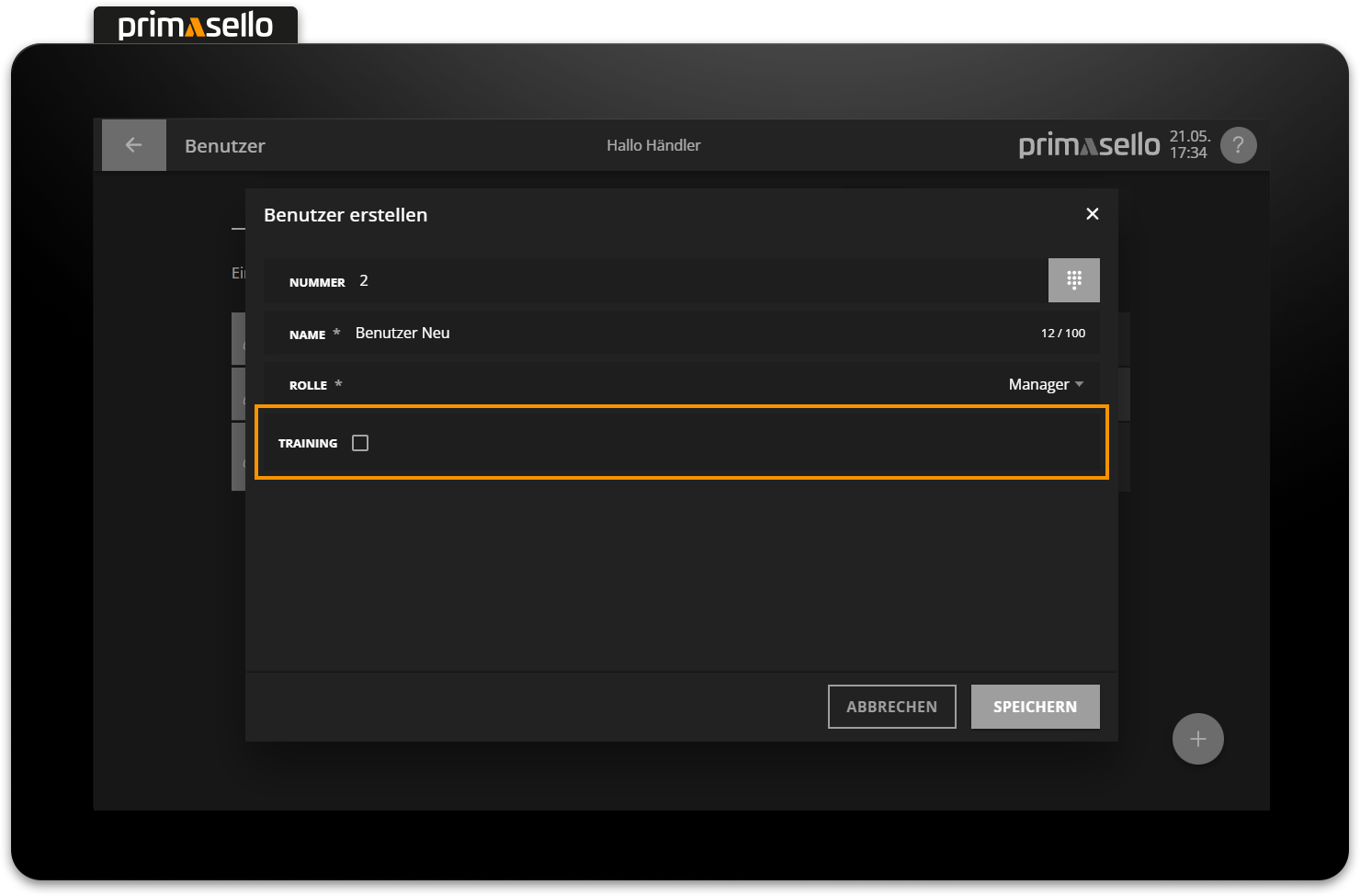 Mehr Informationen zum Trainingsbenutzer gibt es im Kapitel Trainingsbenutzer.
