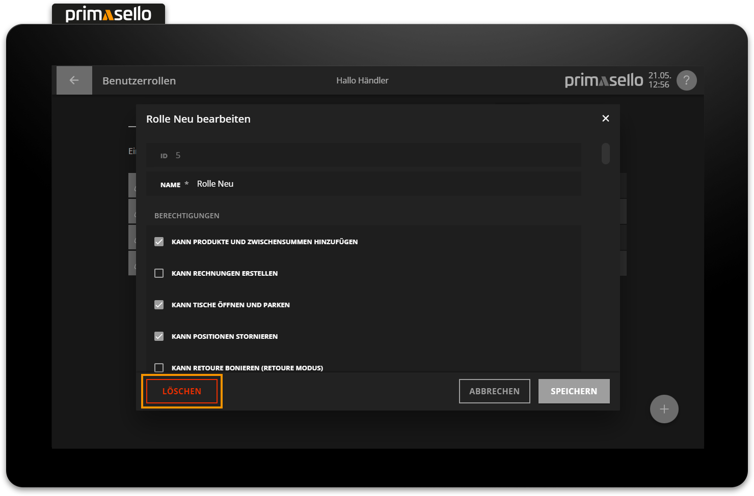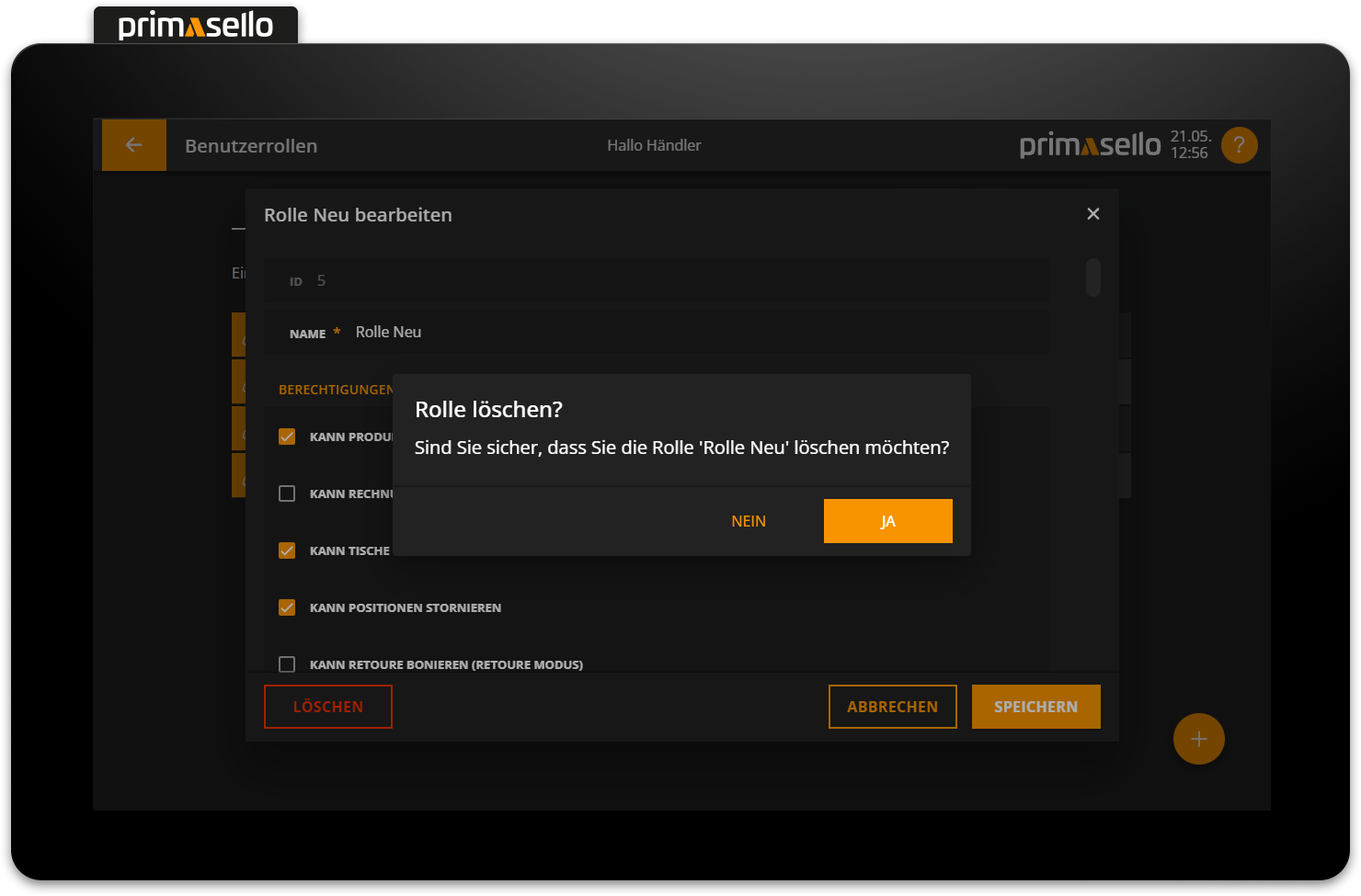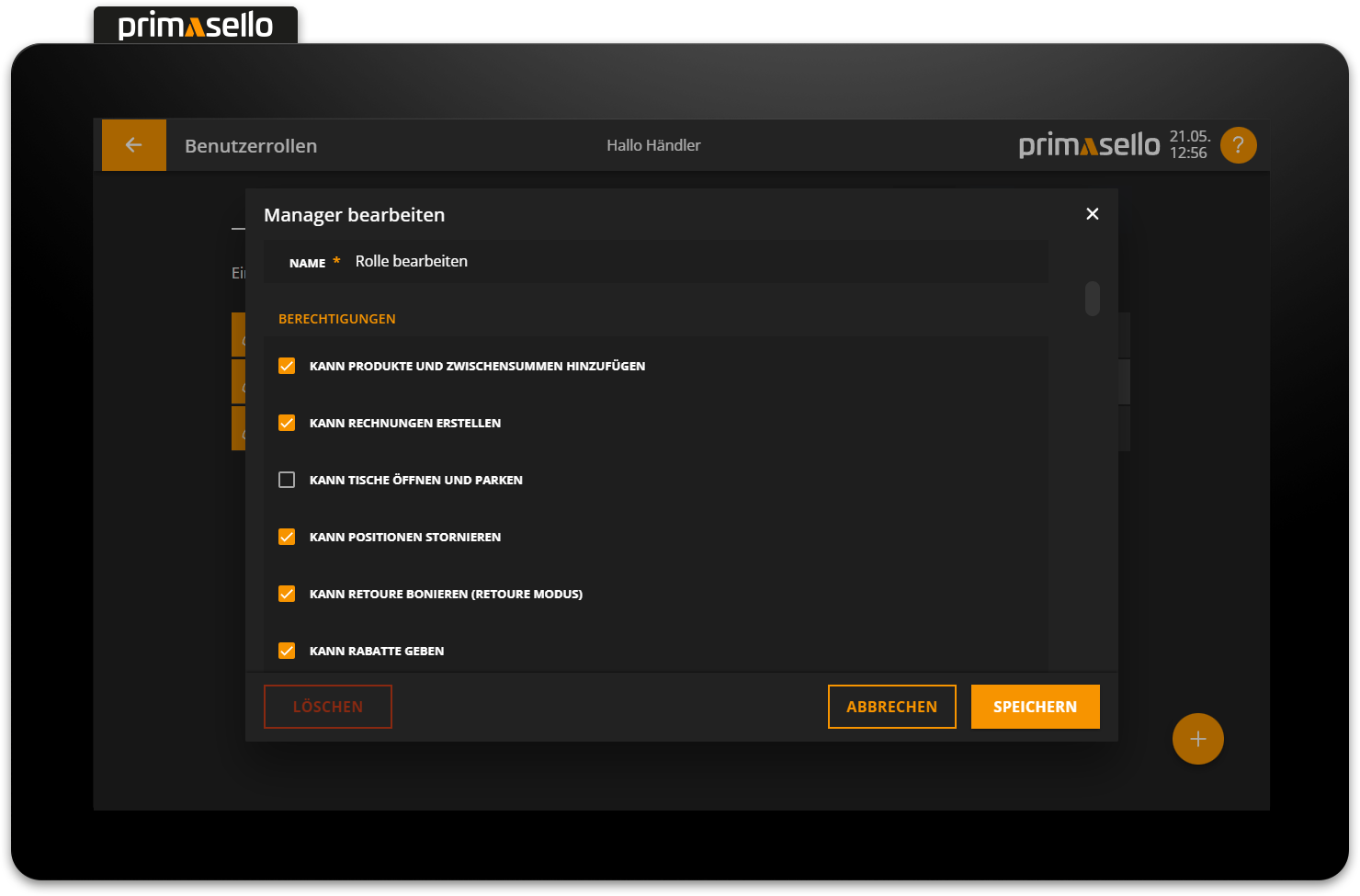 Kann App beenden | Die primasello App kann auf der primasello A1050 Registrierkasse beendet werden. | Bediener, Manager |