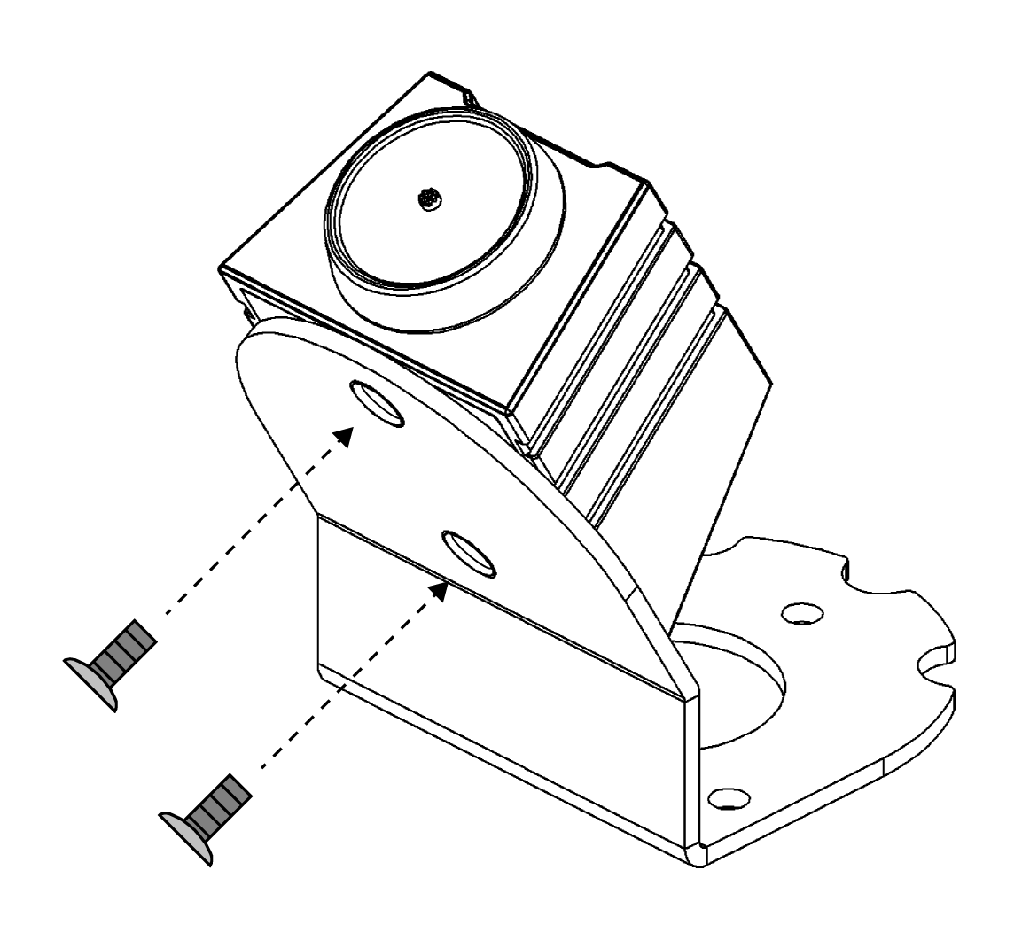 Führen Sie zuerst das USB-Kabel durch das Loch der Metallplatte und setzten Sie das Magnetschloss so auf die andere Seite der Platte, dass die beiden Gewinde an der Unterseite mit den Löchern in der Platte übereinstimmen.