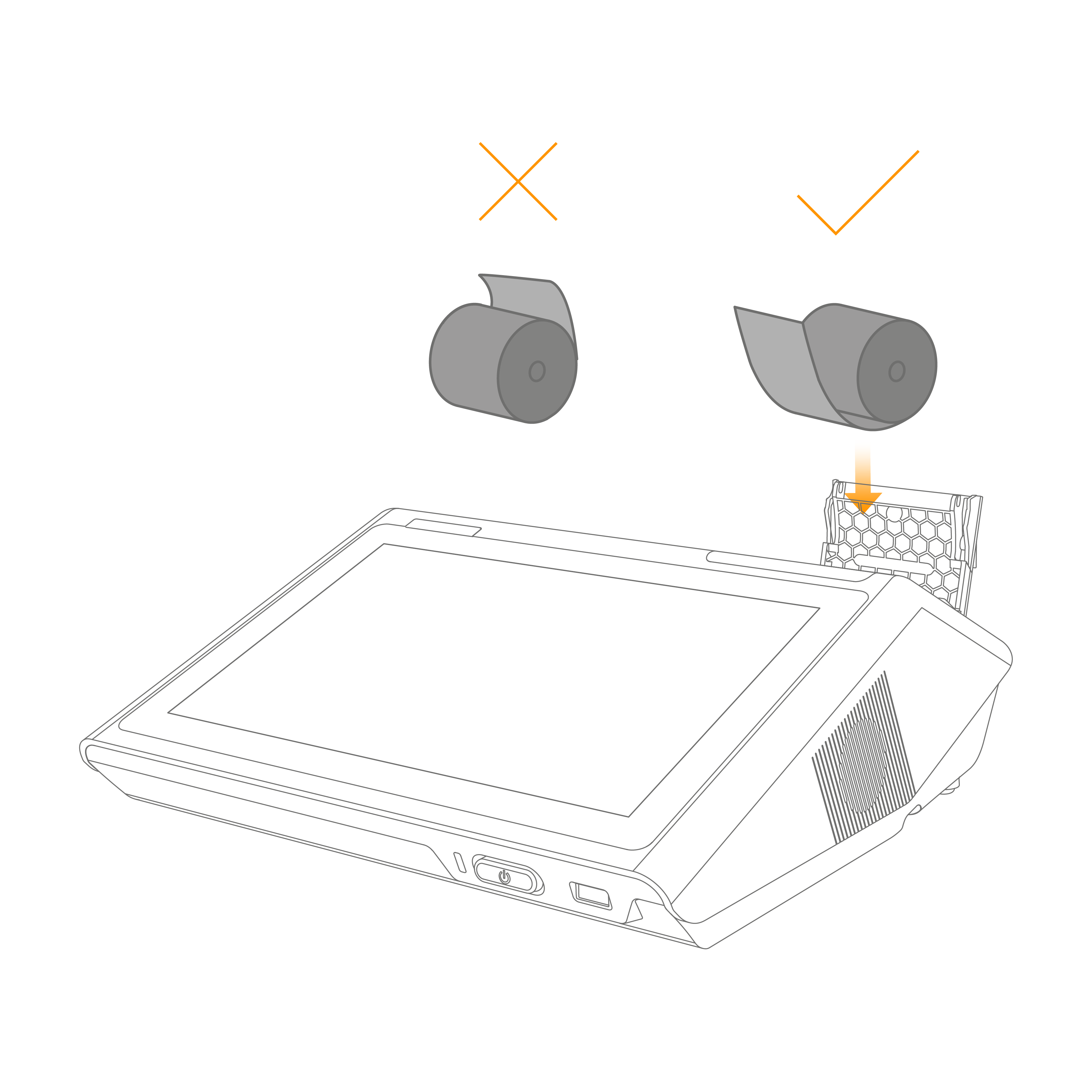 Bitte beim Wechseln der Bonrolle darauf achten, dass der Kern der letzten Rolle vor dem Einsetzen der neuen Rolle entfernt wurde.
