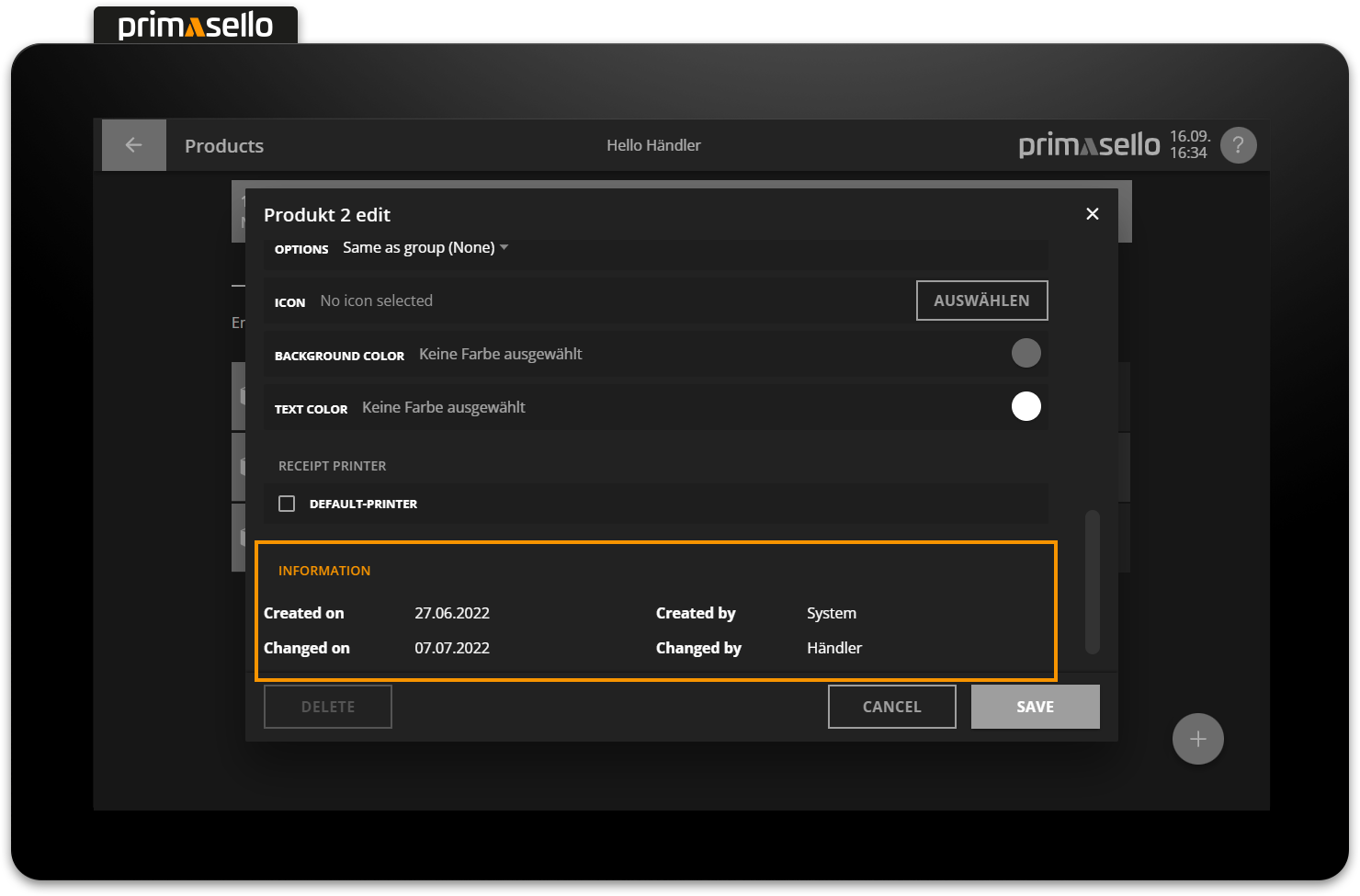 At the bottom of each detail window, you will find additional information about the entry you have created. This section contains the user and date on which the entry was created, as well as information about the last change made.