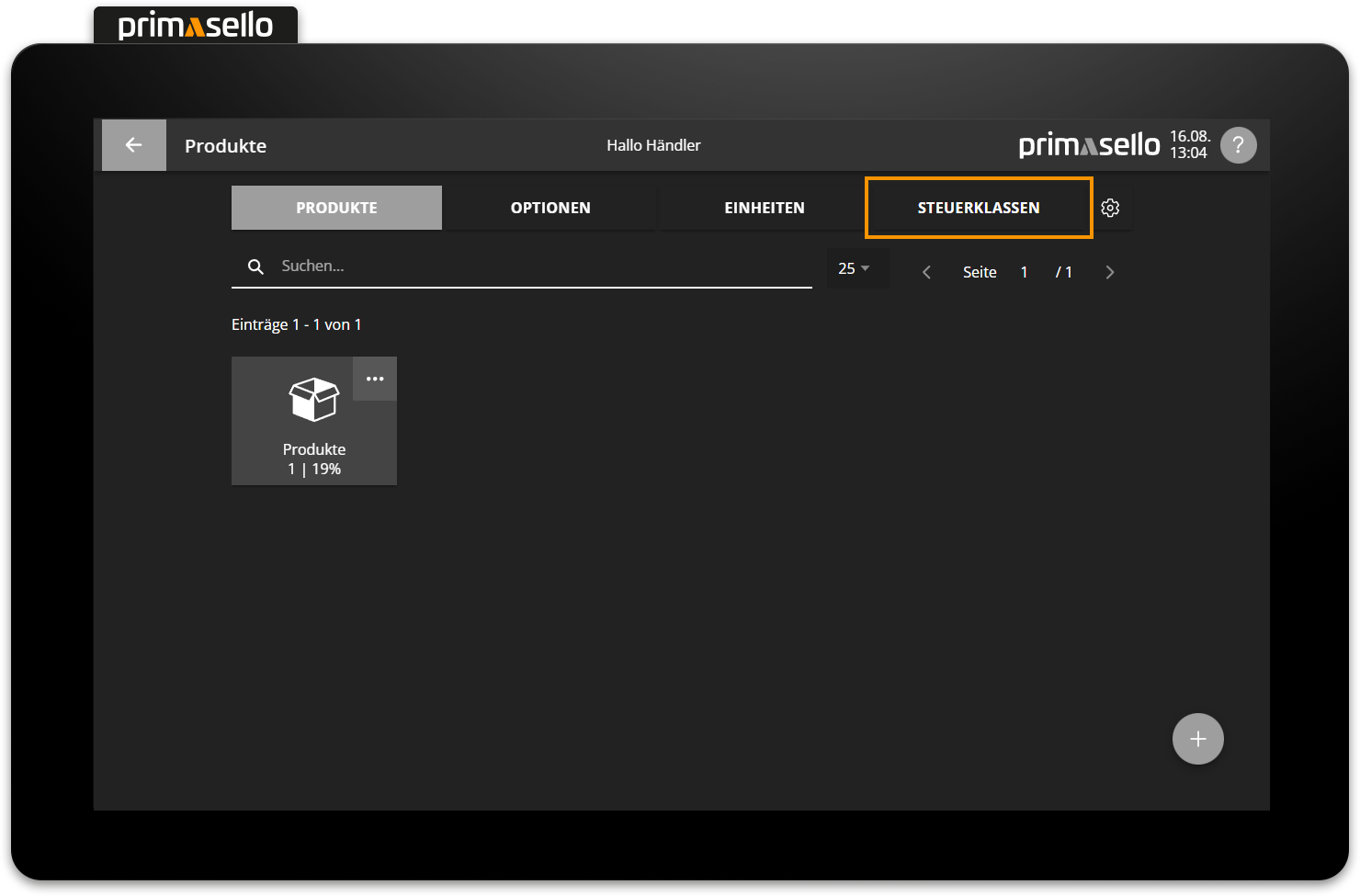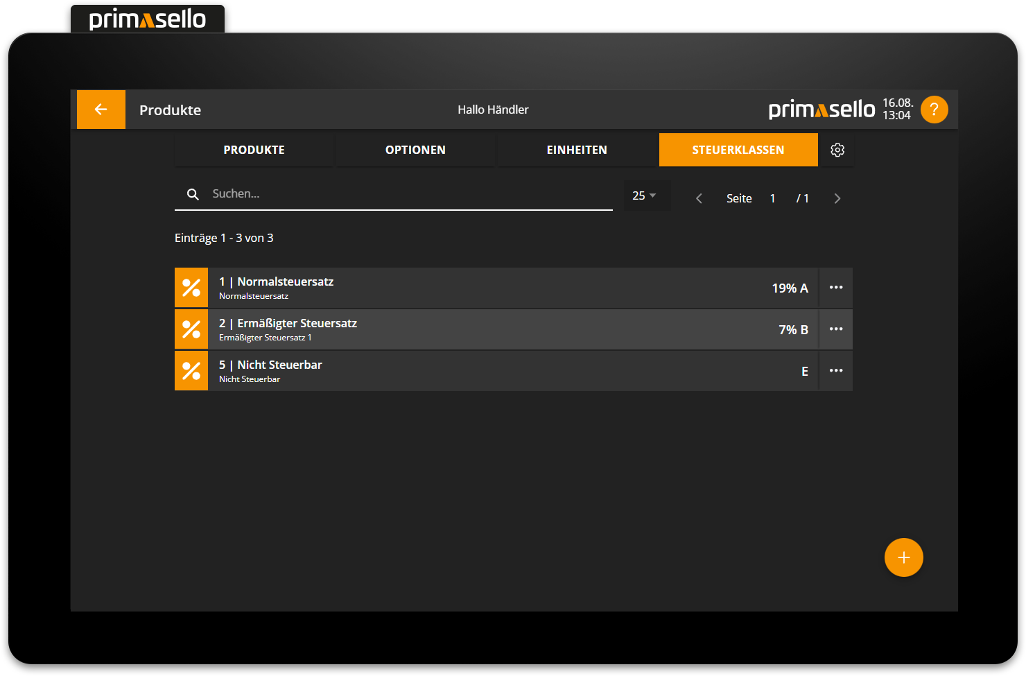 In the list view of tax classes, you can press the orange ‘plus’ button at the bottom right of the screen to create a new tax class.