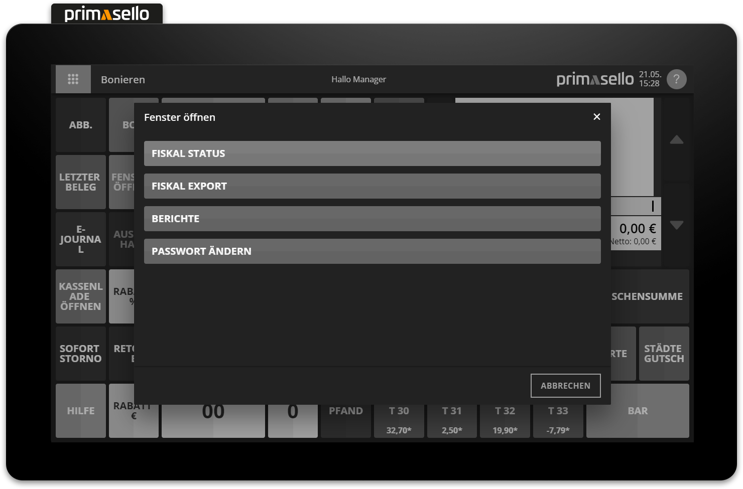 Pressing the ‘Cancel’ button deletes all registered items from the shopping cart and cancels the creation of the receipt.