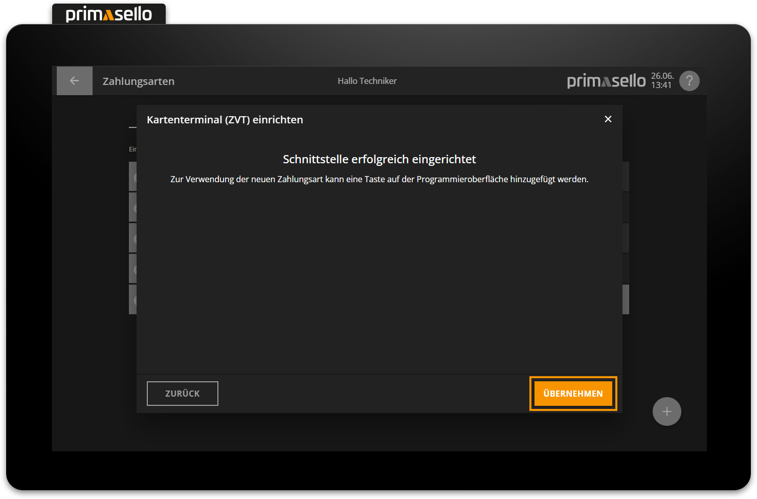 If you have any questions about the card terminal or configuration, your primasello partner will be happy to assist you.